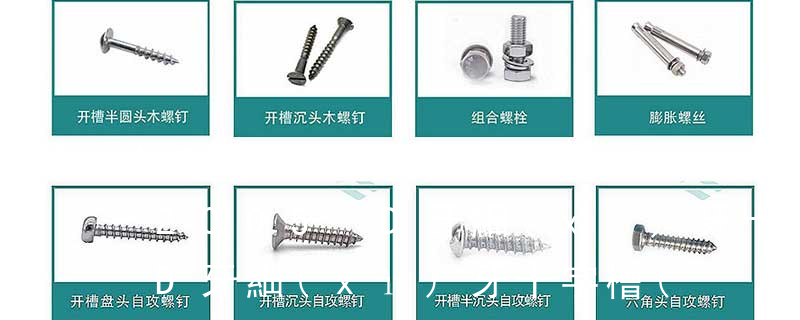 B-1: Sheet Metal Tapping Screw. (鐵板牙自攻螺絲)B-2: Plastic Tapping Screw. ( 塑料用, 自攻螺絲)C: Wooden Screw : 木工螺絲 D: Drywall Screw : 水泥墻螺絲 三. 常見(jiàn)螺絲材質(zhì):a.Low Carbon Steel :低碳鋼 B:球面圓柱頭; C:圓柱頭; F(K):沉頭; H:六角頭;HW:六角頭帶墊圈; O:半沉頭; P:平元頭; R:半元頭;PW:平元頭帶墊圈; T:大扁頭; V:蘑菇頭;④ 螺釘牙型 A:自攻尖尾(日標(biāo)第1種)疏